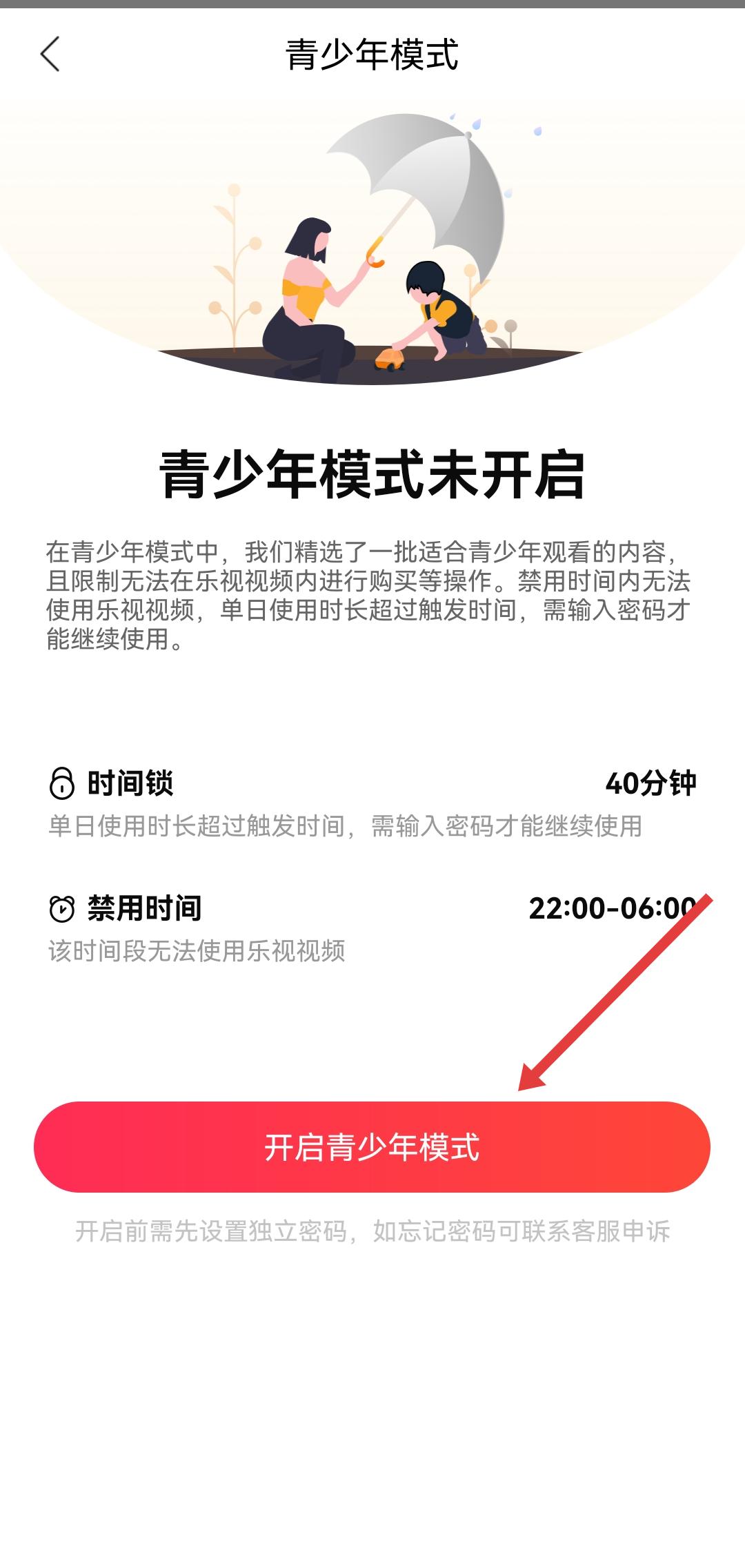 3、點擊后進入密碼設(shè)置界面,按照提示輸入4位密碼,完成密碼設(shè)置后,即可成功切換到青少年模式。