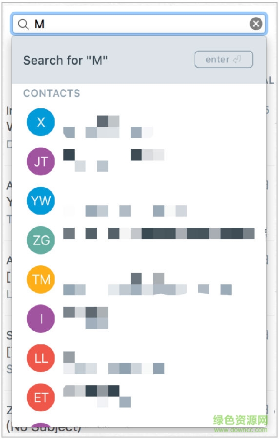 1.軟件搜索無(wú)論是搜郵件還是聯(lián)系人,效率都很高,當(dāng)你輸入關(guān)鍵詞后,列表自動(dòng)篩選包含關(guān)鍵詞的郵件,并會(huì)在搜索框下再?gòu)棾鲆粋€(gè)結(jié)果列表,供你選擇目標(biāo)聯(lián)系人。