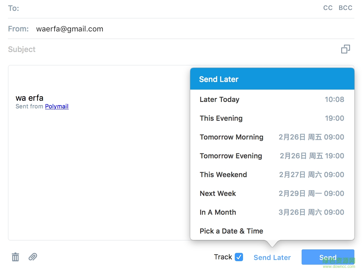 4.在細(xì)節(jié)考量上我發(fā)現(xiàn) Polymail 設(shè)計(jì)的非常恰到好處,提供了 郵件定時(shí)處理,閱讀狀態(tài)跟蹤,郵件定時(shí)發(fā)送,目錄定位,一鍵取消訂閱郵件等功能。
