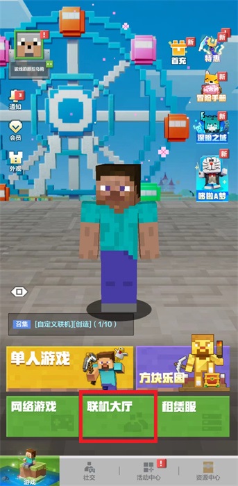 1、在游戲主界面之中,我們可以在其中看到【聯(lián)機(jī)大廳】,點(diǎn)擊進(jìn)入到聯(lián)機(jī)頁面中;
