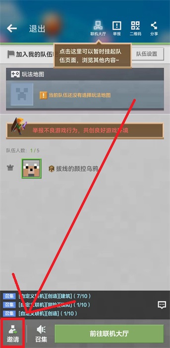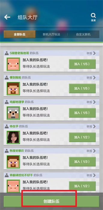 3、隨后需要在這里【創(chuàng)建隊(duì)伍】,這樣才能邀請(qǐng)自己的好友加入自己的房間;