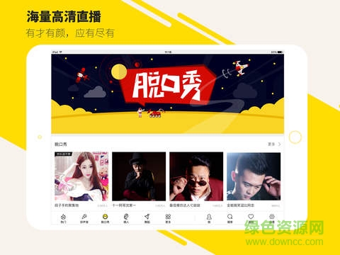 yy語音是一款專為平板打造的語音直播交友軟件,這里有海量的高清直播內容,無論你想看明星現場直播還是美女唱歌跳舞又或者是聊妹搭訕,都可以在這里找到你想看的。還要看發(fā)送彈幕,和上千網友互動,禮物刷不停!達人主播陪你玩:唱歌、跳舞、脫口秀、戶外獵奇、游戲直播、交友互動達人等應有盡有。還有阿哲、文er、球球等當紅主播齊聚YY。不管何時何地,開心或憂傷,上YY,給你最溫暖的陪伴!