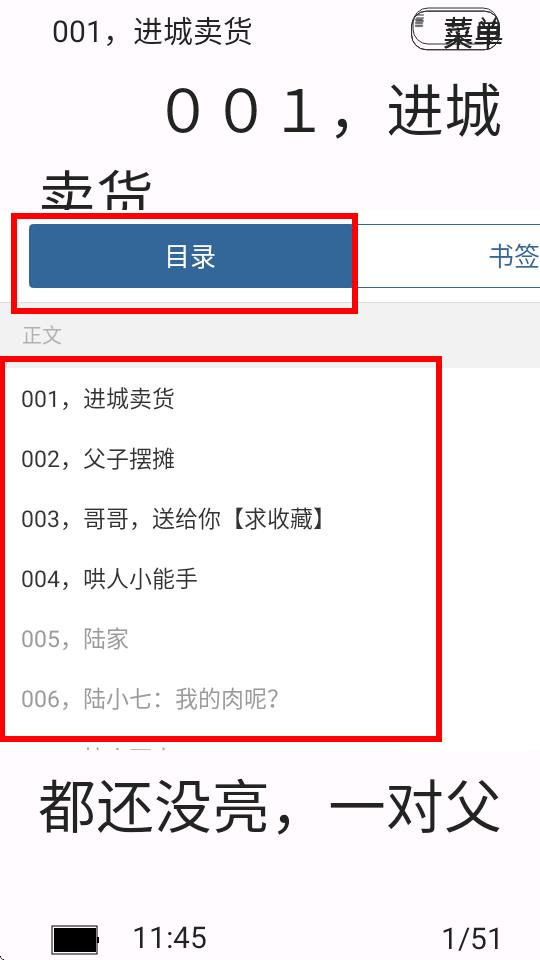 3、頁面彈出后,點擊目錄選項,即可查看該小說包含的章節(jié)列表,快速跳轉(zhuǎn)閱讀不同章節(jié)。