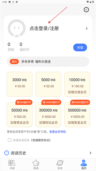 2、進入我的頁面內(nèi),點擊上方登錄/注冊的按鈕。