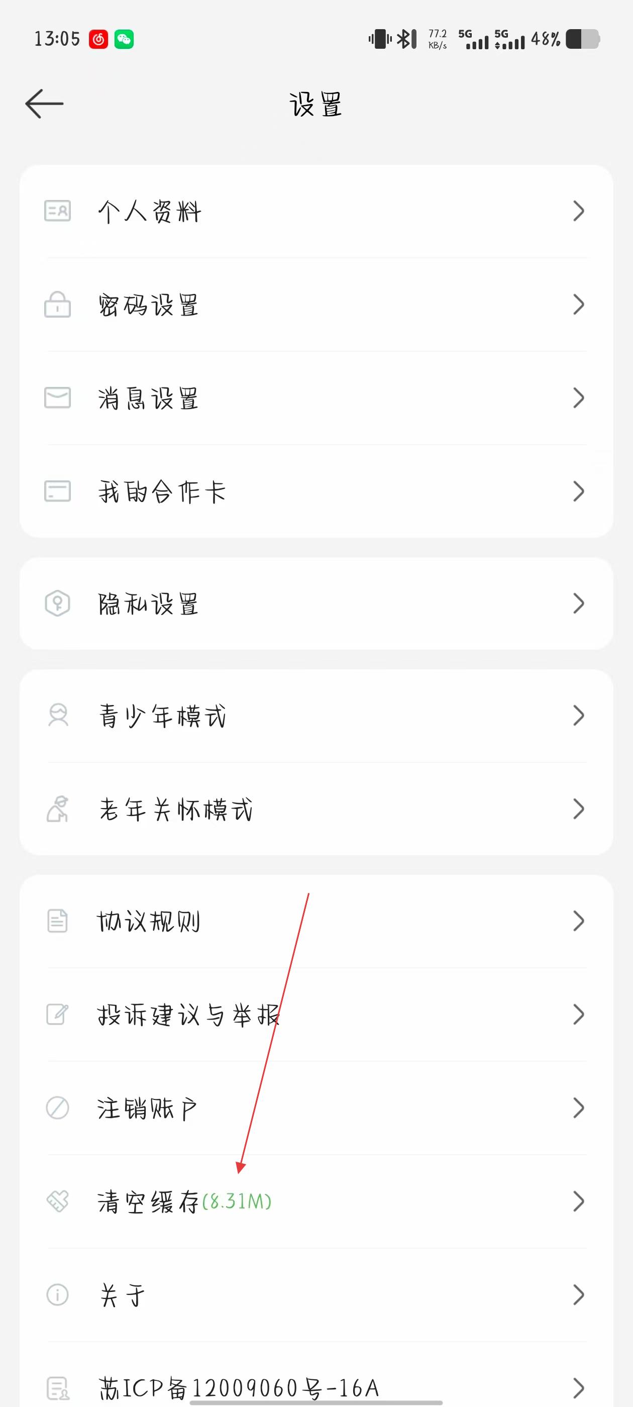 3、在設(shè)置界面中,找到并點(diǎn)擊清空緩存選項(xiàng)。