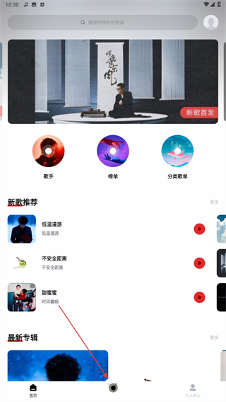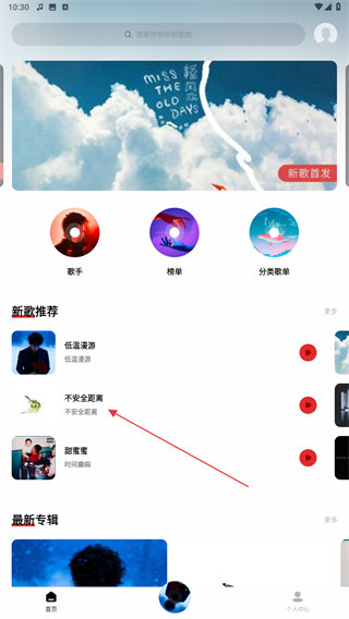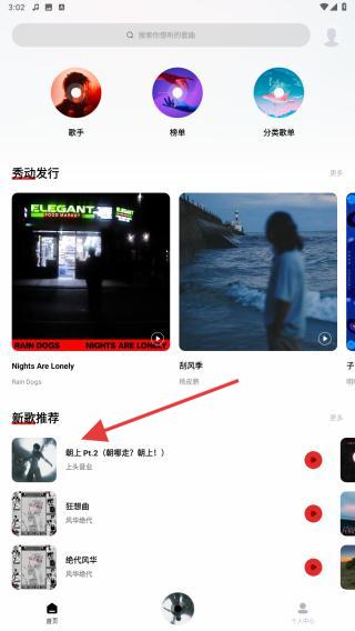 1、啟動千千音樂的應(yīng)用,在首頁點擊播放的歌曲名稱。
