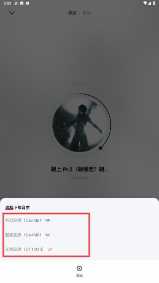 3、在彈出的選擇下載音質(zhì)窗口中,根據(jù)需求選擇無損品質(zhì)、超高品質(zhì)或標(biāo)準(zhǔn)品質(zhì),即可開始下載。