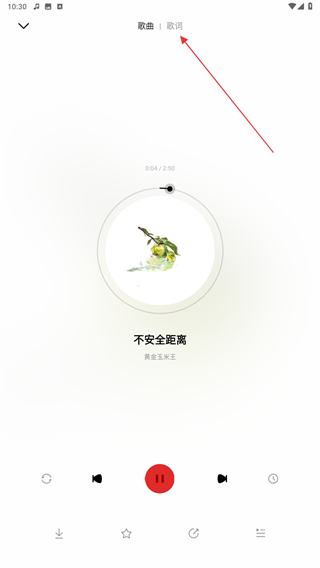 3、在歌曲播放的界面內(nèi),點擊上方歌詞的按鈕。