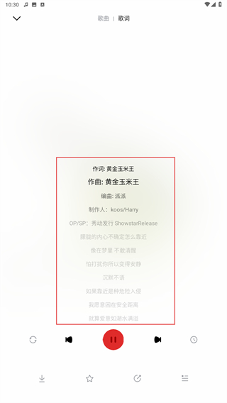 4、進入歌詞的頁面內(nèi),向下滑動可查看完整歌詞。