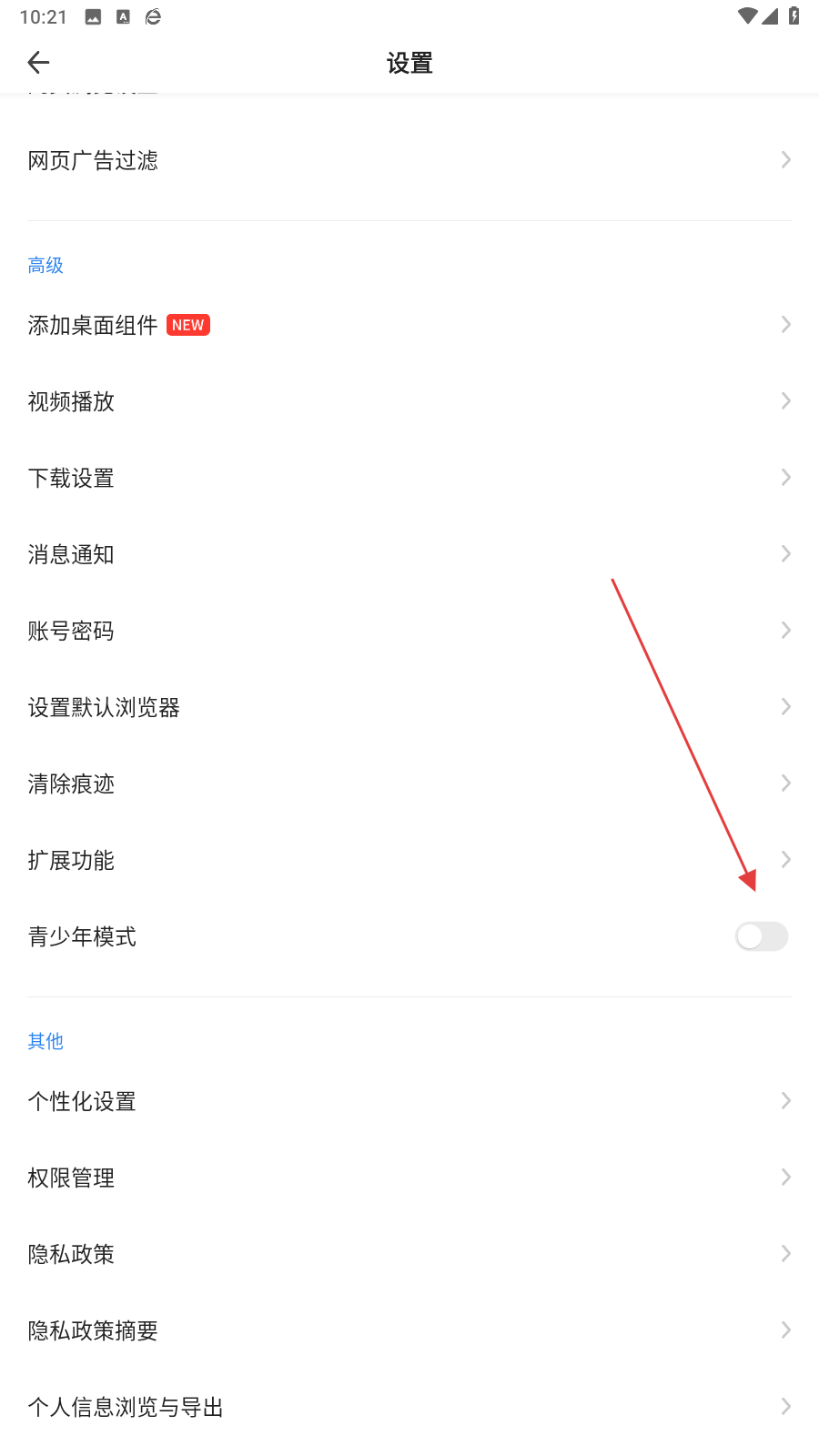 4、進(jìn)入設(shè)置的頁面內(nèi),向下滑動(dòng)找到并開啟右側(cè)青少年模式的按鈕。
