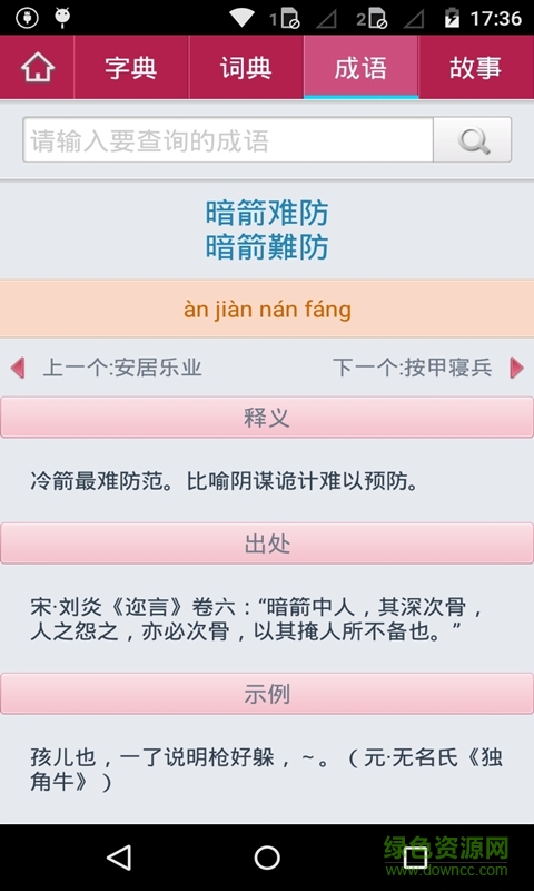 2.字典:支持漢字檢索,拼音檢索,部首檢索,五筆檢索。每個漢字都有詳細(xì)的拼音,部首,解釋和發(fā)音。