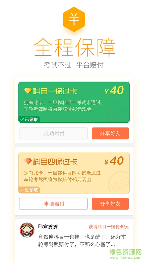 車不過,平臺就賠:通過平臺報名的學(xué)員,即可免費獲得平臺賠付資格;