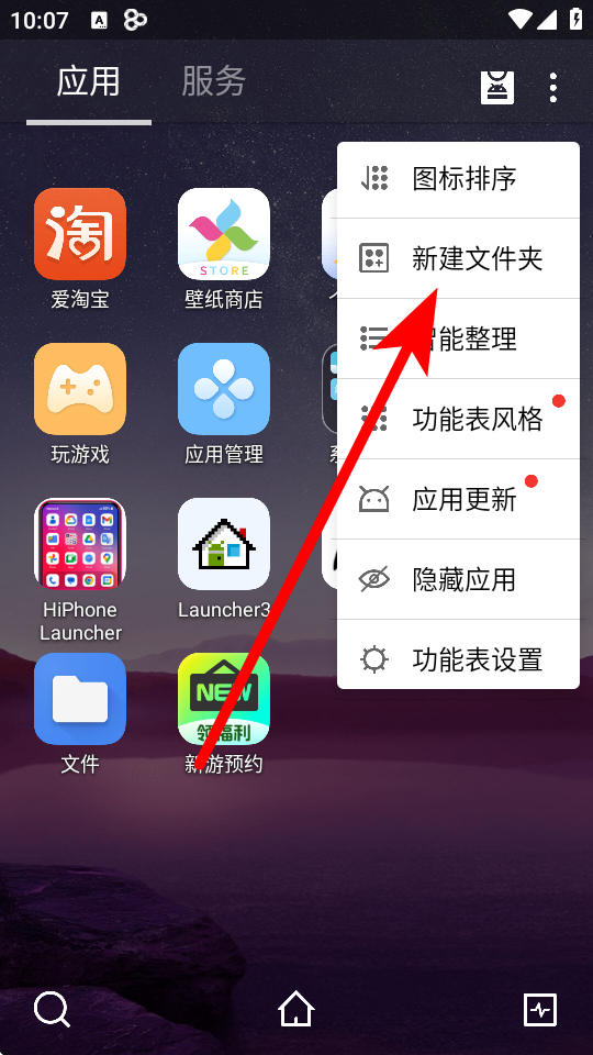3、在操作菜單中,點(diǎn)擊新建文件夾選項(xiàng),進(jìn)入應(yīng)用選擇界面。