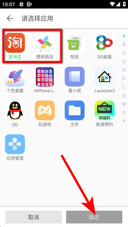 4、在應(yīng)用選擇界面,勾選想要放入新文件夾的應(yīng)用,然后點(diǎn)擊確定按鈕,完成新建文件夾操作。