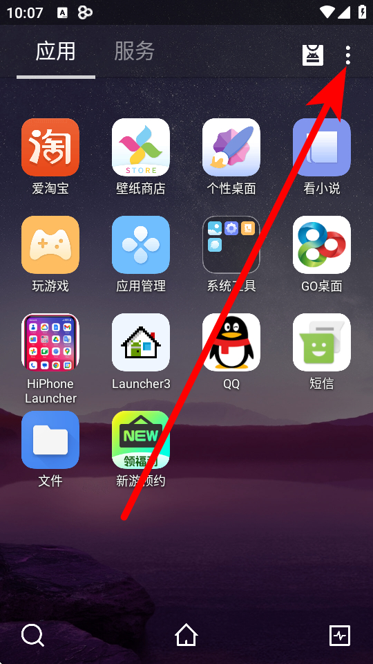 1、在go桌面主界面,點(diǎn)擊底部的應(yīng)用抽屜按鈕,進(jìn)入應(yīng)用列表界面。