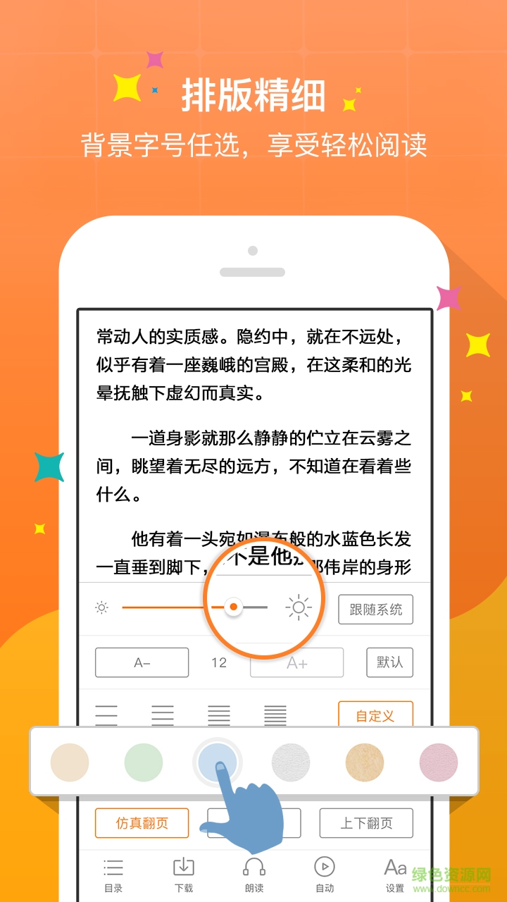 6、舒適的閱讀體驗(yàn),夜間模式,自動(dòng)閱讀,隨意換背景和字體大小,讓您暢快閱讀!
