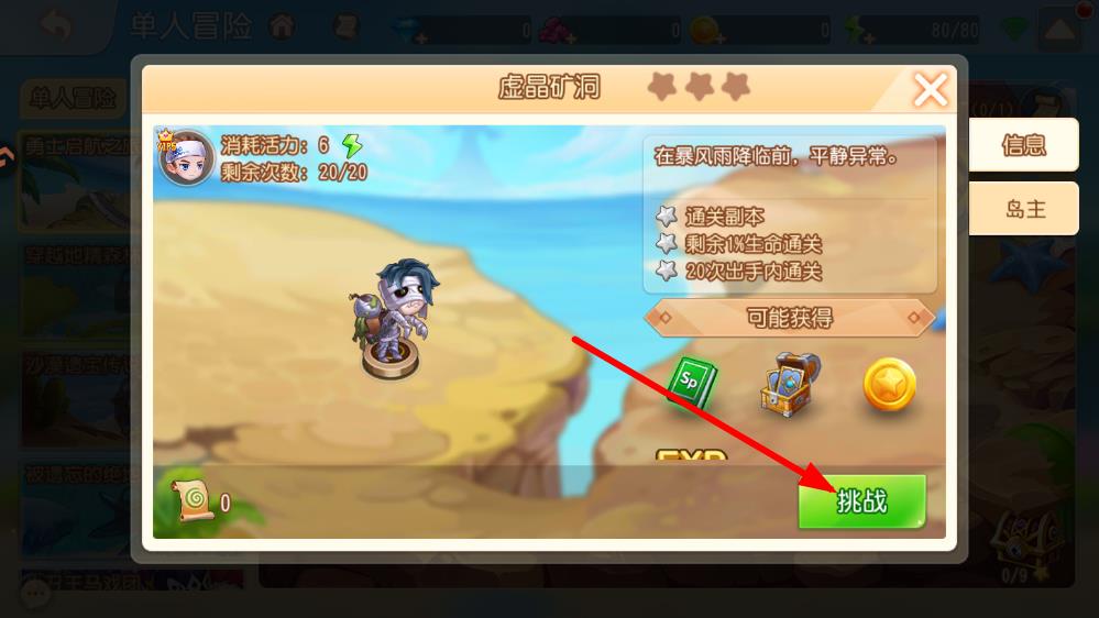 4、在任務(wù)詳情頁面,通過查看任務(wù)目標(biāo)的完成進度,點擊挑戰(zhàn)進入任務(wù)關(guān)卡,確認任務(wù)是否完成。
