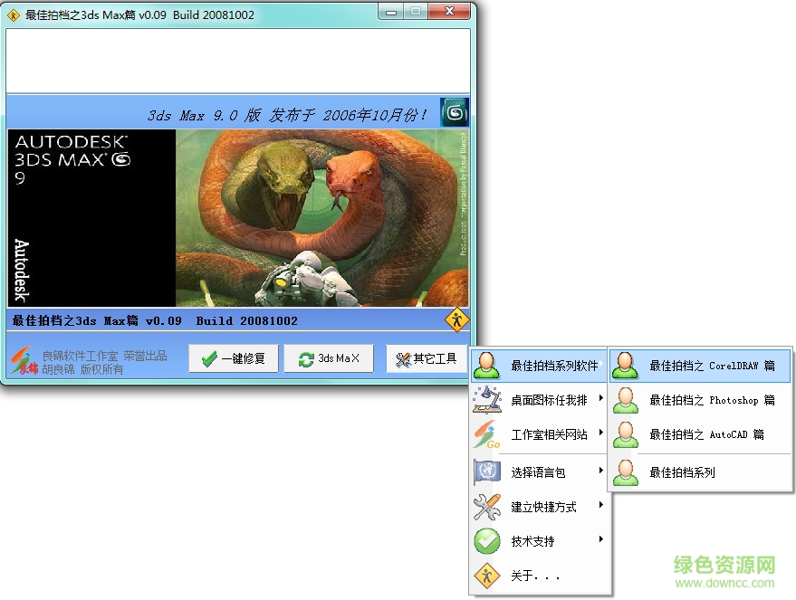最佳拍檔之3ds Max篇是一款專為3ds Max推出的助手,讓你快速獲取最新的3ds軟件和修復(fù)工具,隨時(shí)解決你的各種煩惱,綠色資源網(wǎng)歡迎大家免費(fèi)下載!