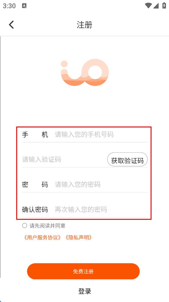 2、在登錄頁面,點(diǎn)擊免費(fèi)注冊按鈕,進(jìn)入注冊界面。