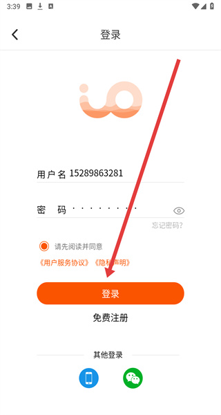 3、跳轉(zhuǎn)到登錄頁面后,可以點(diǎn)擊上方輸入框依次填寫手機(jī)號和密碼信息。