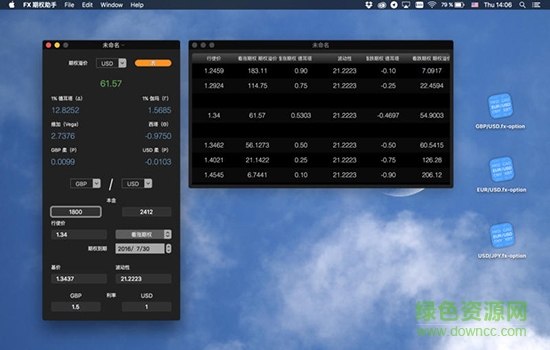 fx期權(quán)助手Mac版是一款通過各種類型的計(jì)算來預(yù)示故事漲跌溢價(jià)和風(fēng)險(xiǎn)參數(shù)的蘋果電腦端軟件,讓大家可以更準(zhǔn)確的算出故事的相關(guān)風(fēng)險(xiǎn)數(shù)據(jù),歡迎有需要的朋友來綠色資源網(wǎng)下載使用!
