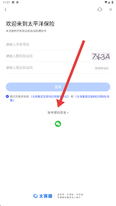 1、在太平洋保險(xiǎn)賬號(hào)登錄頁(yè)面中,可以點(diǎn)擊賬號(hào)密碼登錄按鈕切換登錄方式。