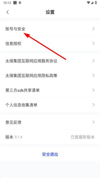 3、在設(shè)置頁(yè)面,點(diǎn)擊賬號(hào)與安全選項(xiàng),進(jìn)入賬號(hào)與安全頁(yè)面。