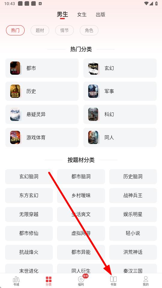 1、打開(kāi)追書(shū)神器app,點(diǎn)擊底部導(dǎo)航欄中的書(shū)架選項(xiàng)進(jìn)入書(shū)架頁(yè)面。