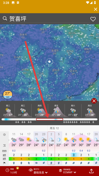 3、還可以通過拖動(dòng)滾輪,查看未來(lái)幾天的天氣詳情。