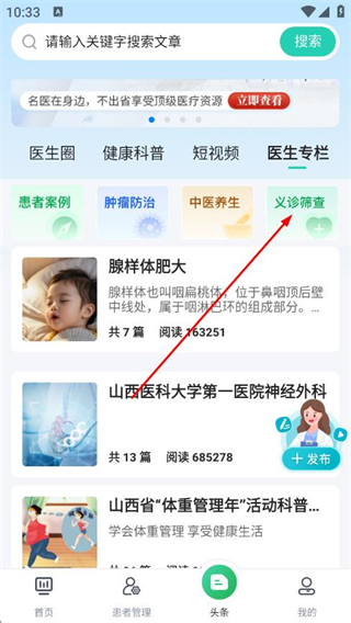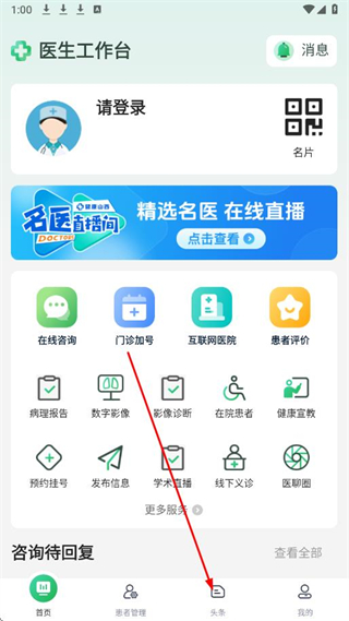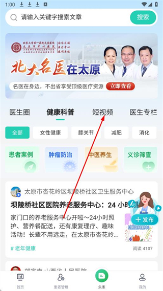 1、打開健康山西醫(yī)生版APP,點擊底部頭條,進入頭條頁面。
