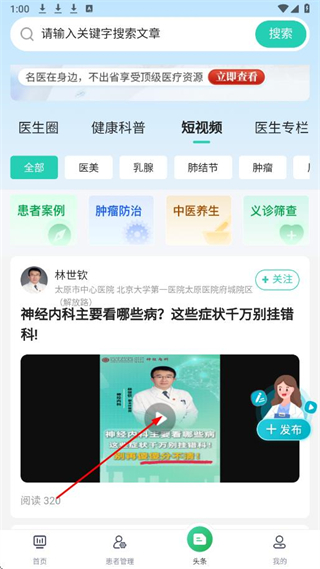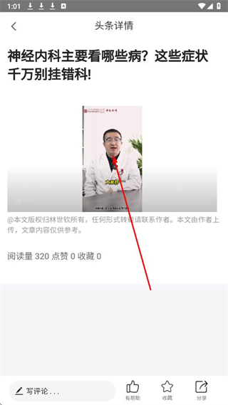4、進入頭條詳情頁面,即可觀看該短視頻,了解相關醫(yī)療知識等內容。
