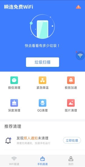 瞬連免費(fèi)wifi是一款安卓端的WiFi管理軟件,通過對手機(jī)所連接WiFi的屬性進(jìn)行分析,檢測聯(lián)網(wǎng)環(huán)境與各項(xiàng)參數(shù)配置,提供WiFi安全檢測、網(wǎng)絡(luò)測速等功能,幫助用戶更便捷的管理和使用WiFi。