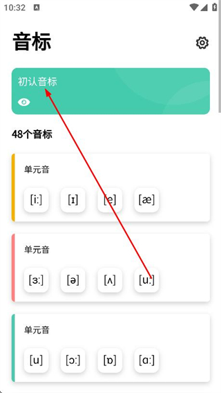 4、在音標(biāo)的分類頁面,即可開始學(xué)習(xí)音標(biāo)的分類。