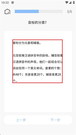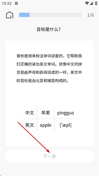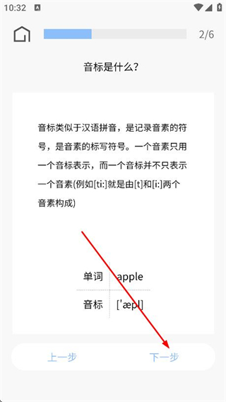 2、進入音標(biāo)基礎(chǔ)學(xué)習(xí)頁面,點擊下一步。