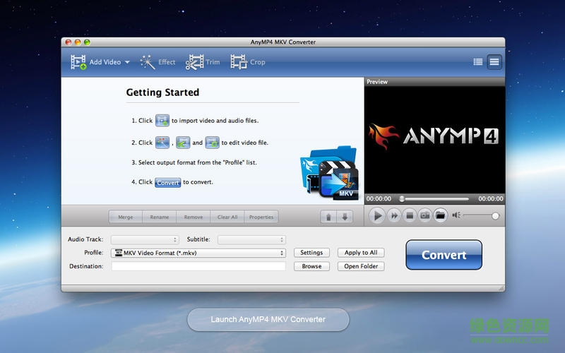 AnyMP4 MKV Converter mac版是一款能將MKV格式任意轉(zhuǎn)化為MP4、MOV、AVI等視頻格式的工具,多種格式可選一鍵轉(zhuǎn)換方便快捷,需要的朋友就來綠色資源網(wǎng)下載吧!