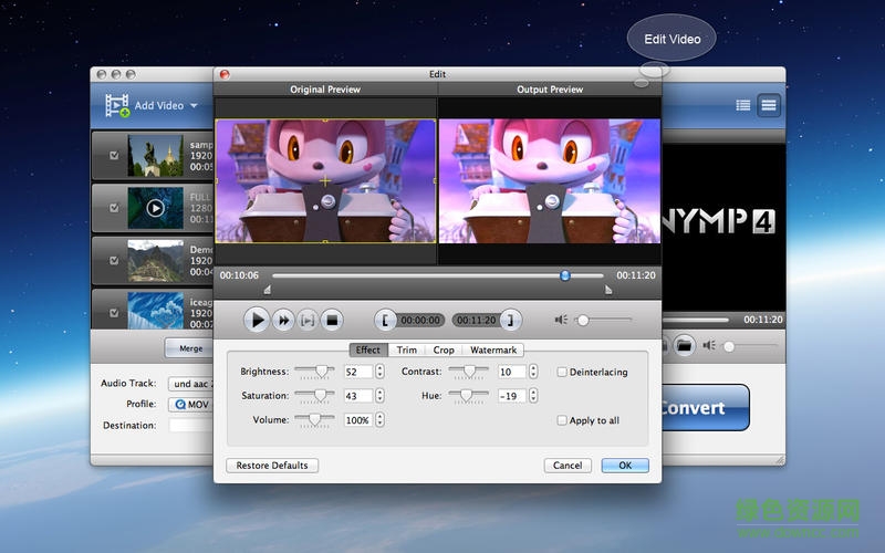這個視頻mkv轉(zhuǎn)換器有多種編輯功能,為您完美的視頻輸出。你可以調(diào)整視頻效果對比,亮度,飽和度,色調(diào)和體積,修剪視頻的長度,擺脫框架的黑邊,添加圖像/文本水印的視頻剪輯成一個新加入的幾個單文件。