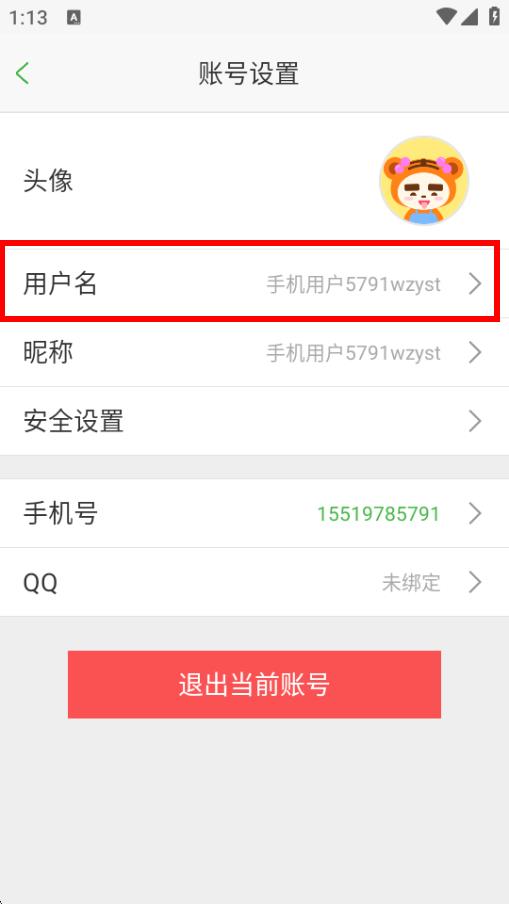 3、在賬號設(shè)置界面中,選擇用戶名選項。