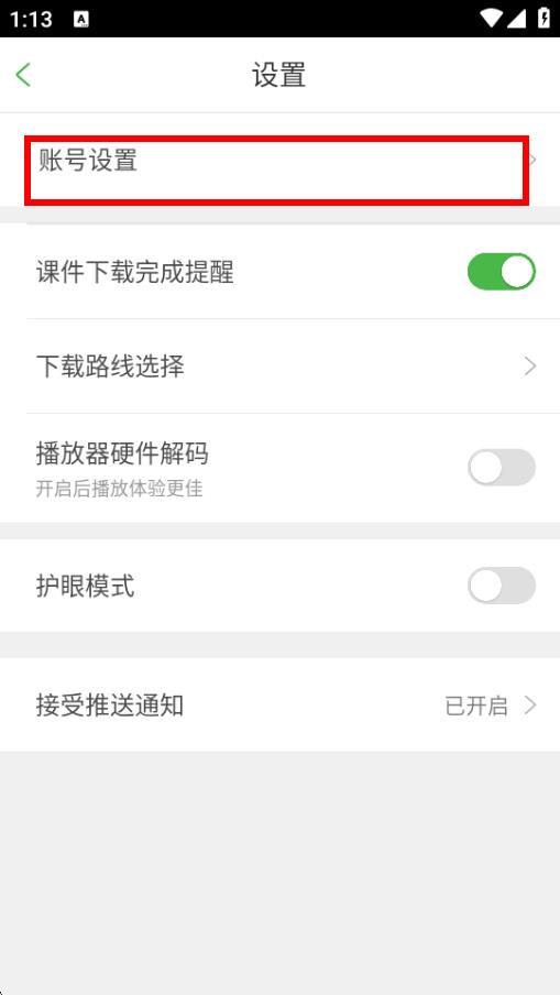 2、在設(shè)置頁面里,點擊賬號設(shè)置選項進(jìn)入賬號設(shè)置界面。