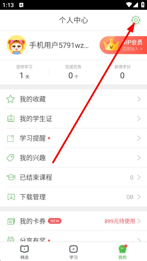 1、打開滬江網(wǎng)校app進(jìn)入我的界面,點擊個人中心右上角設(shè)置圖標(biāo)。