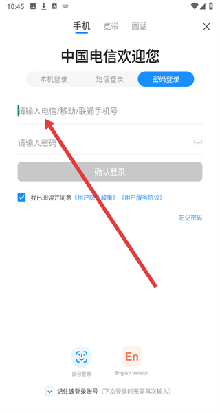 4、在進(jìn)入到登錄頁面時(shí),可以在密碼登錄界面中依次輸入手機(jī)號(hào)和密碼后,點(diǎn)擊確認(rèn)登錄按鈕完成登錄。