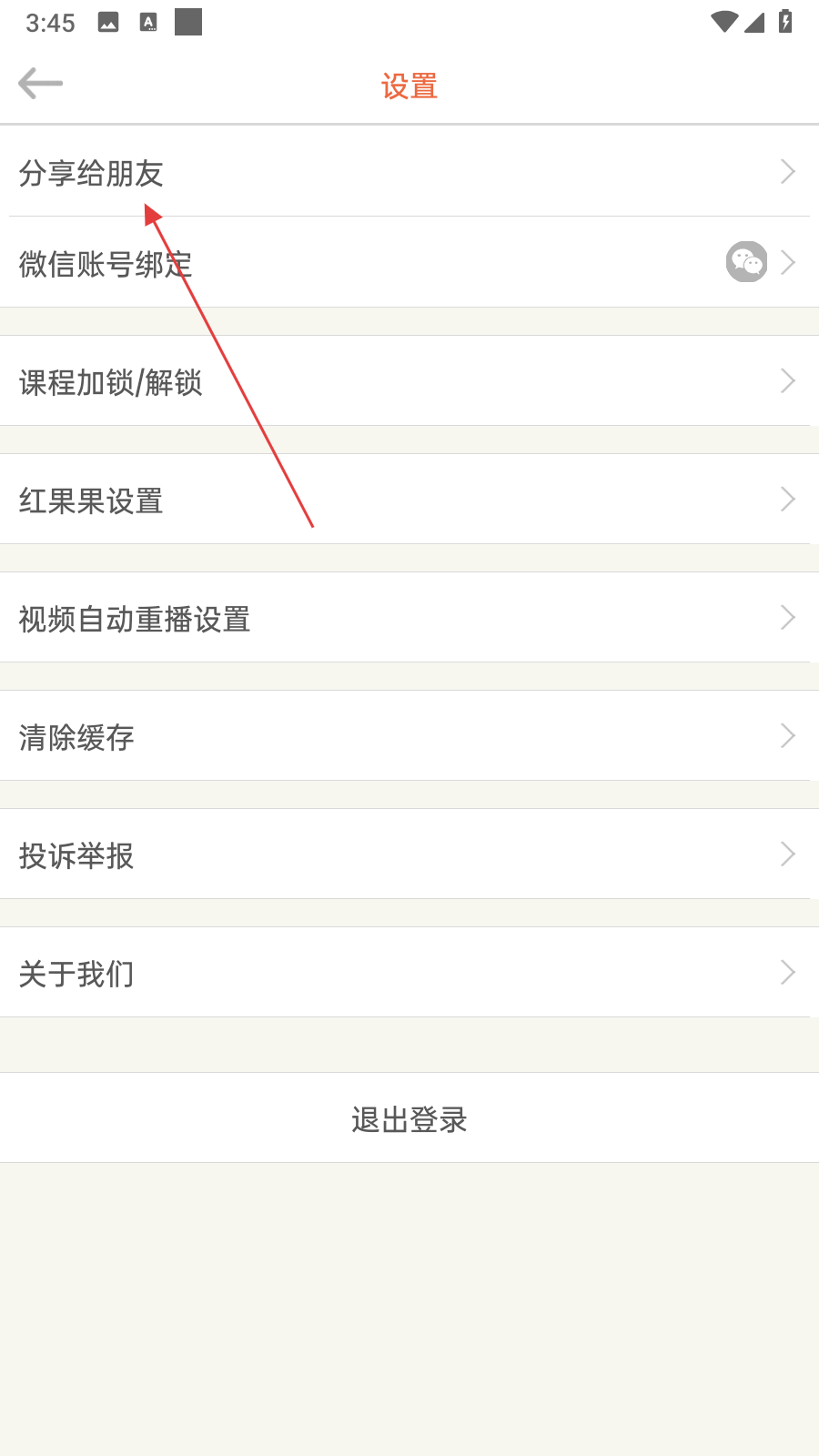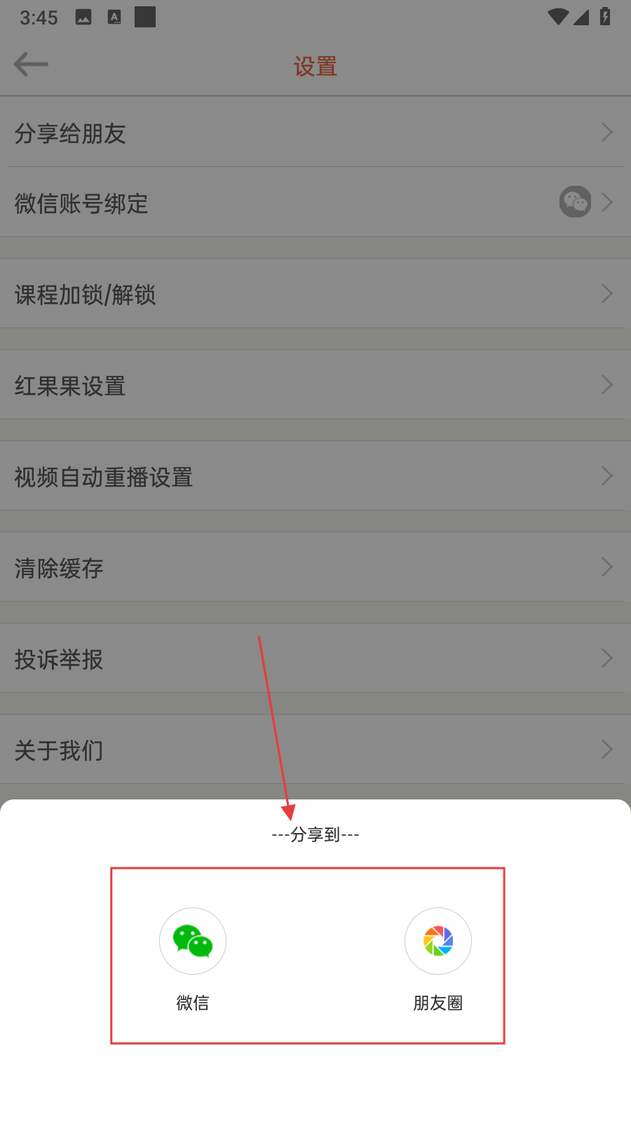 3、在設(shè)置界面里,點(diǎn)擊分享給朋友選項(xiàng),彈出分享渠道選擇框。