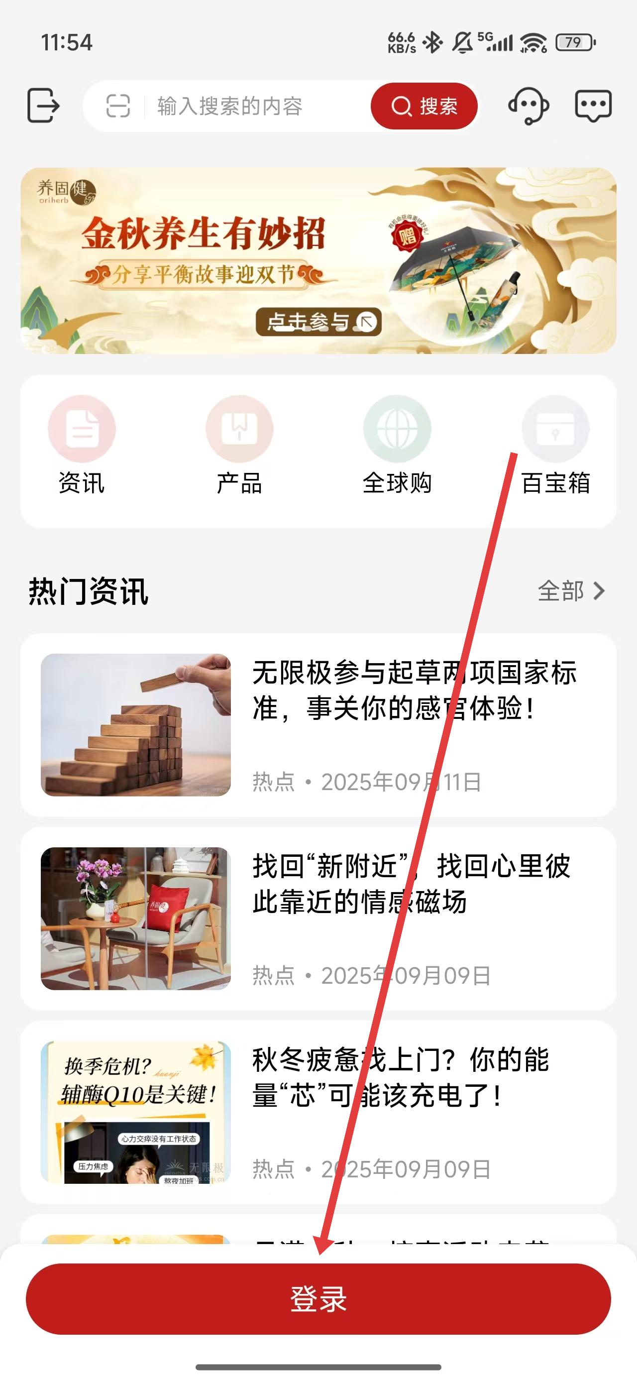 2、在進(jìn)入到無極限首頁中,可點(diǎn)擊底部登錄按鈕,開始登錄操作。