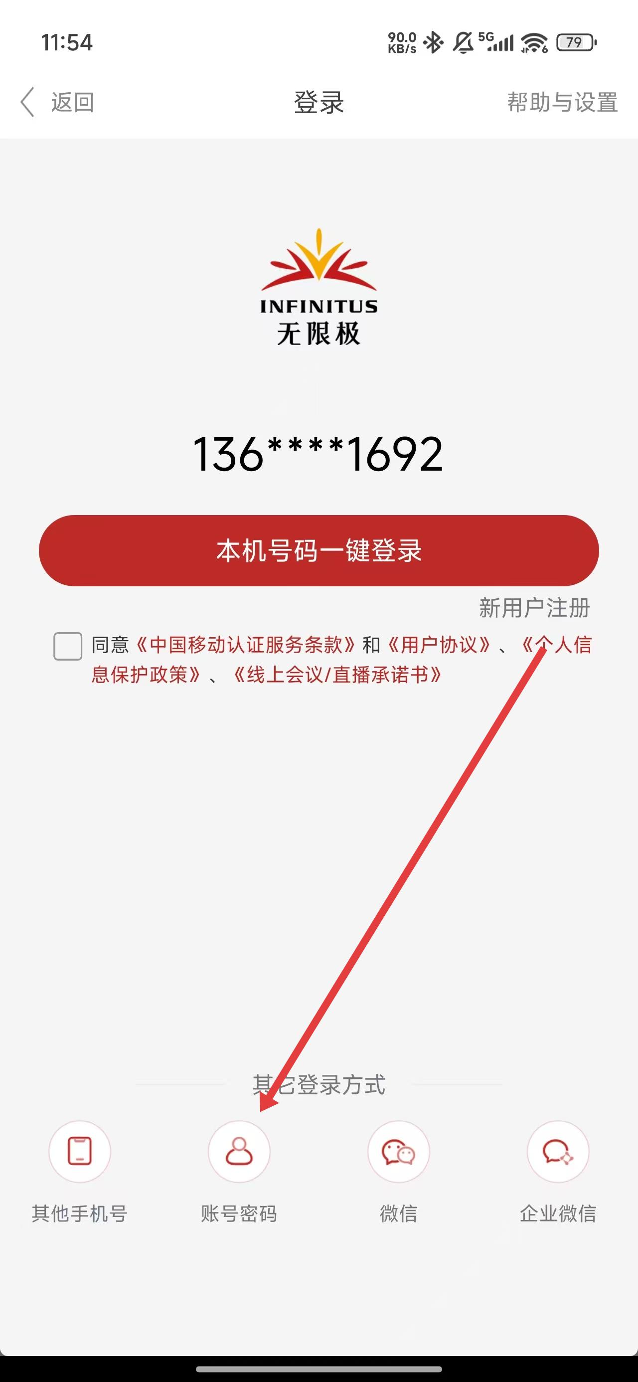 3、進(jìn)入到登錄頁面后,可以點(diǎn)擊下方賬號密碼按鈕,切換登錄方式。
