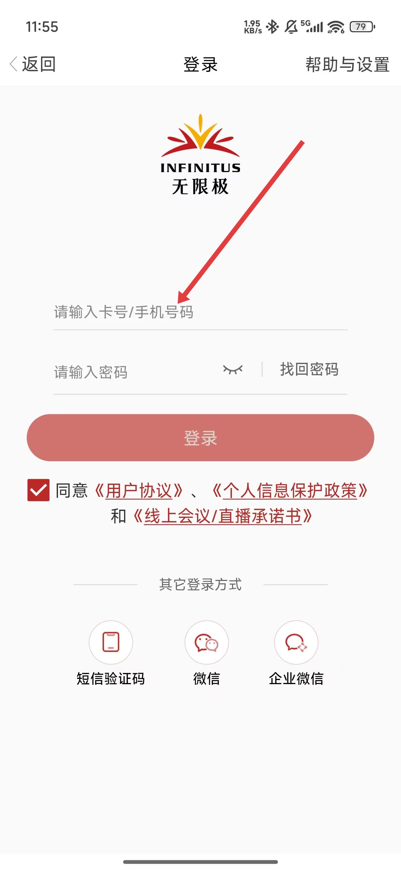 4、點(diǎn)擊輸入框,依次填寫手機(jī)號碼和密碼后完成登錄操作。