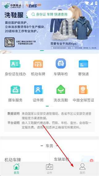 1、打開(kāi)郵證APP,點(diǎn)擊底部我的,進(jìn)入個(gè)人頁(yè)面。