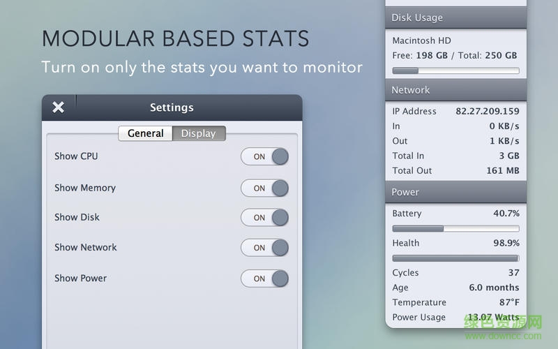 StatsBar mac版是一款系統(tǒng)進(jìn)行監(jiān)測(cè)和控制中心,能讓蘋果電腦的用戶快速了解自己電腦的CPU和內(nèi)存的使用率,同時(shí)了解軟件的權(quán)限和電池電源的健康,歡迎MAC用戶來下載使用哦!