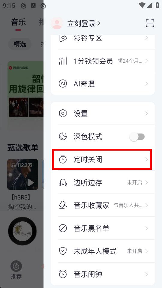 2、在側(cè)邊欄中,點(diǎn)擊定時(shí)關(guān)閉選項(xiàng)進(jìn)入定時(shí)設(shè)置界面。