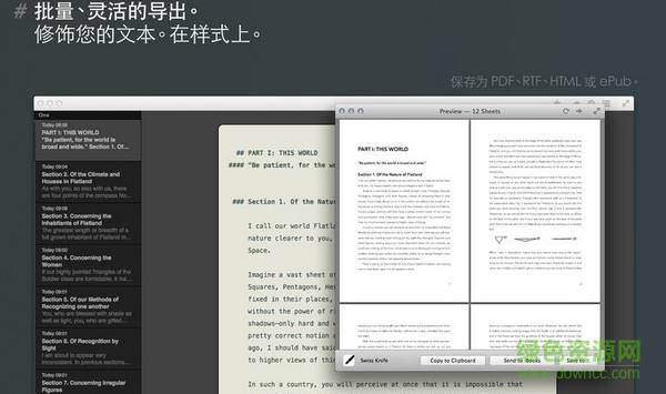 1.Ulysses 的導(dǎo)出功能非常強(qiáng)大和靈活:只需點(diǎn)按幾下,您就能將純文本寫作轉(zhuǎn)換成漂亮的 PDF 文稿、網(wǎng)頁和電子書。無論書寫是自娛自樂還是給全世界的人看,無論是寫博客還是偉大的美國小說,Ulysses III 都是您的理想選擇。