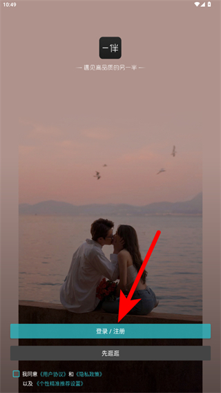 1、打開一伴APP,點(diǎn)擊登錄/注冊按鈕,進(jìn)入注冊流程。