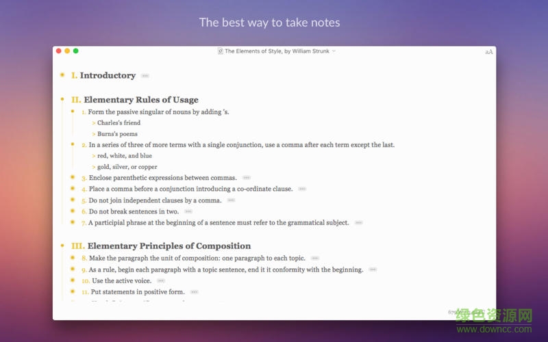 4.全屏幕模式,Outlinely Express框架,支持結(jié)構(gòu)化的筆記。